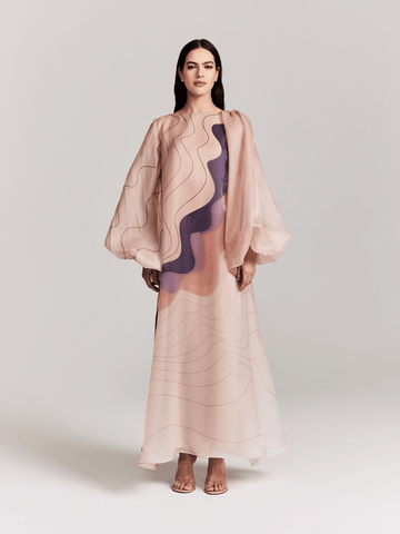 PEACH PRINTED ORGANZA LOOSE FIT DRESS