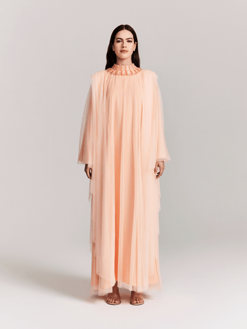 PEACH TULLE OVERSIZED DRESS WITH AN EMBROIDERED COLLAR