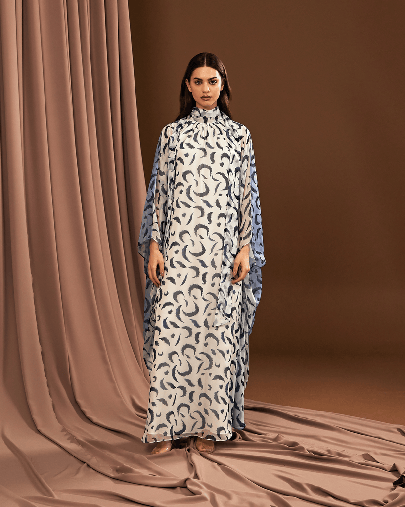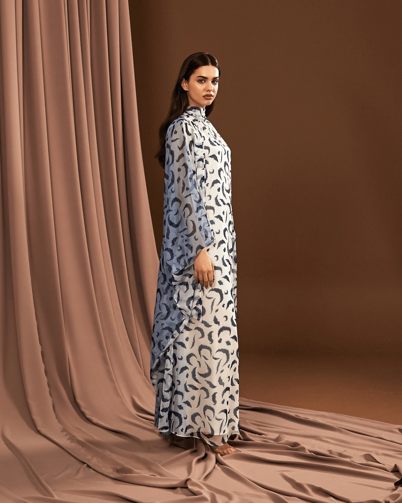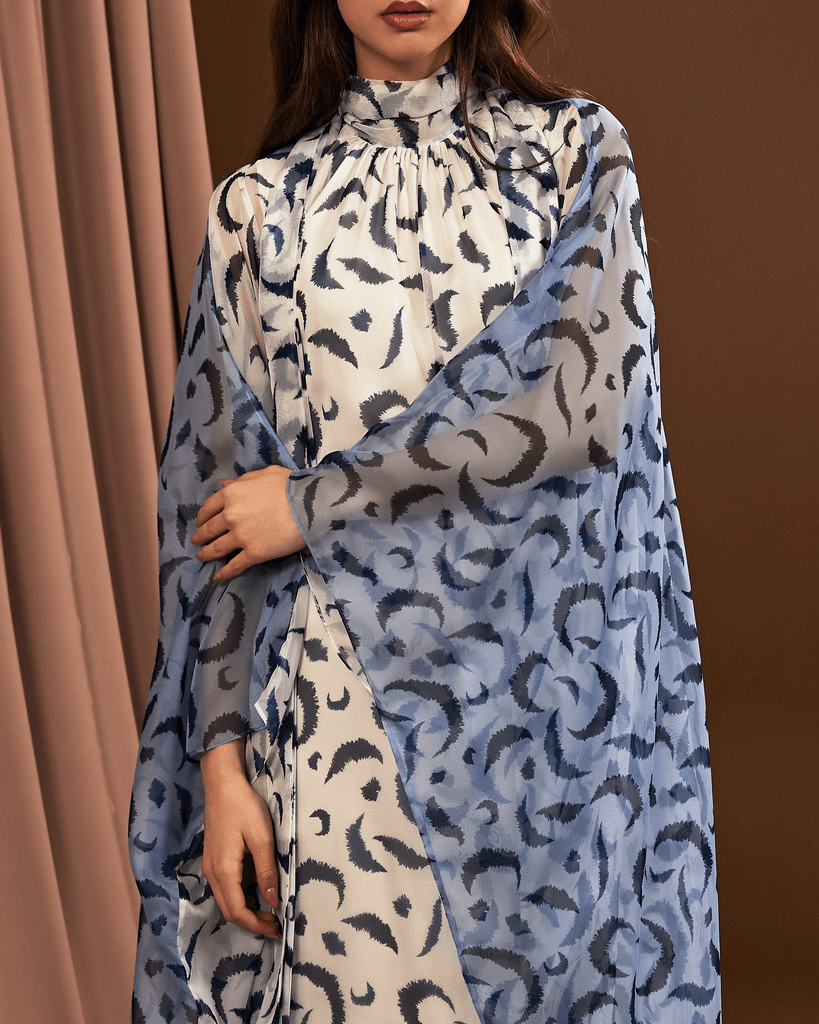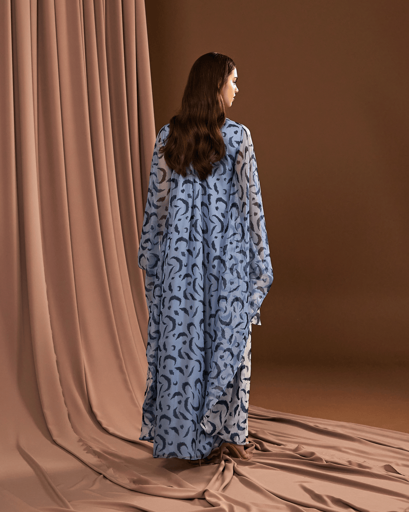 BLUE DOUBLE SIDE PRINTED CHIFFON OVERSIZED DRESS