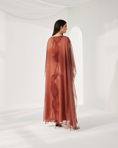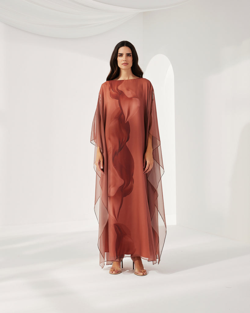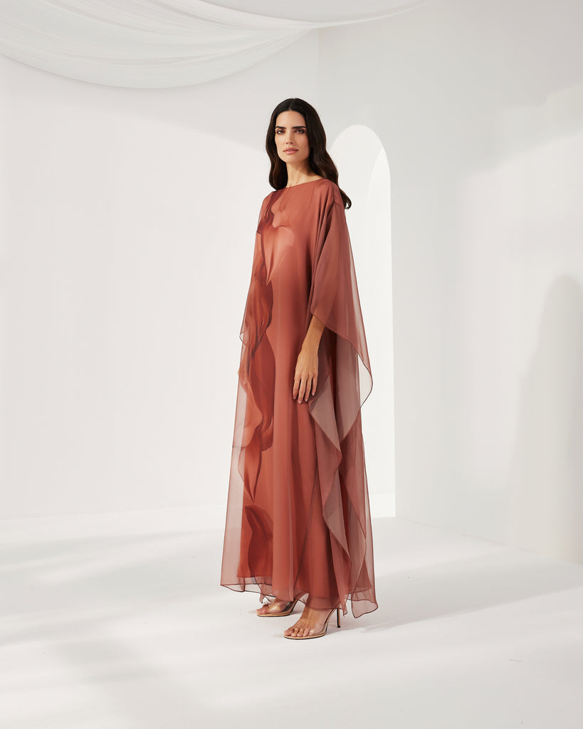 CORAL PRINTED CHIFFON OVERSIZED DRESS