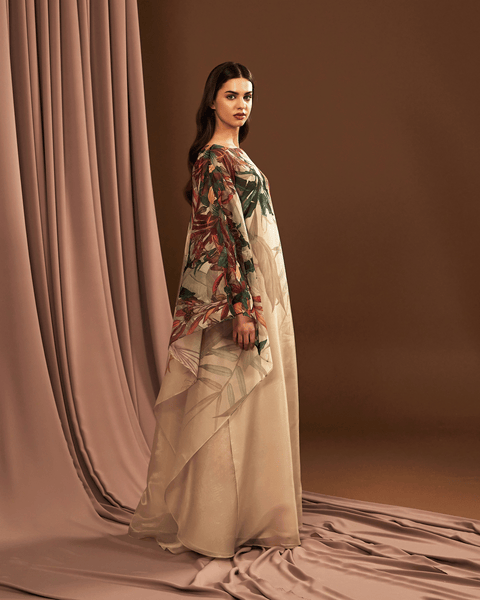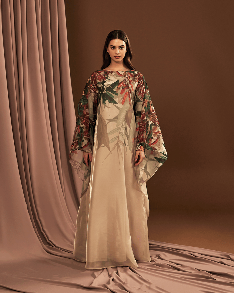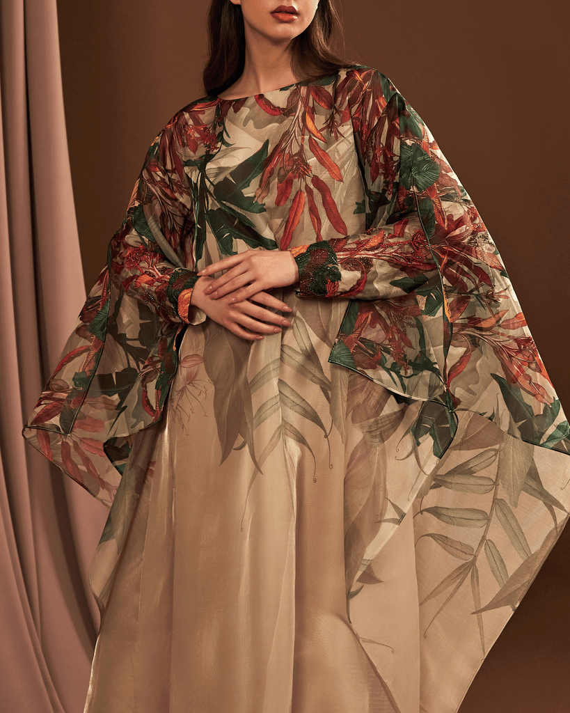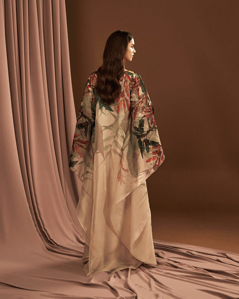 CREAM SAFARI PRINTED AND EMBROIDERED THOUB