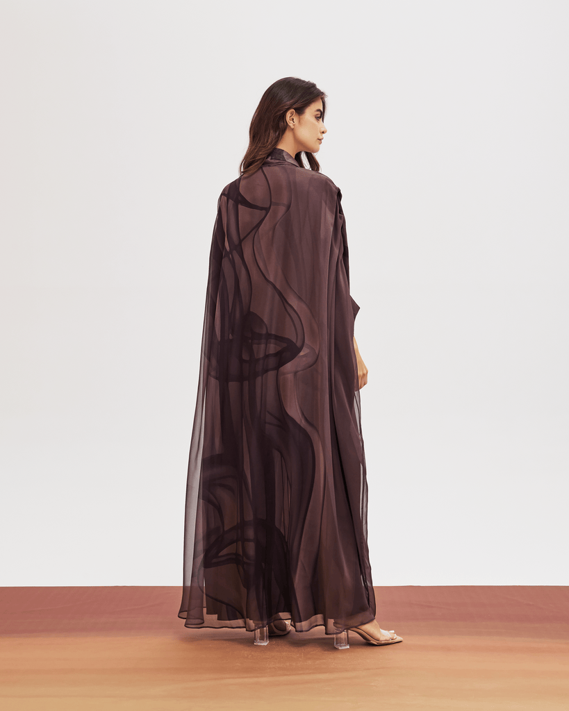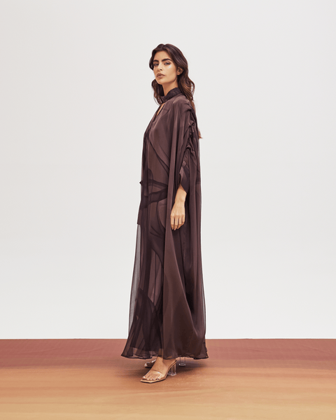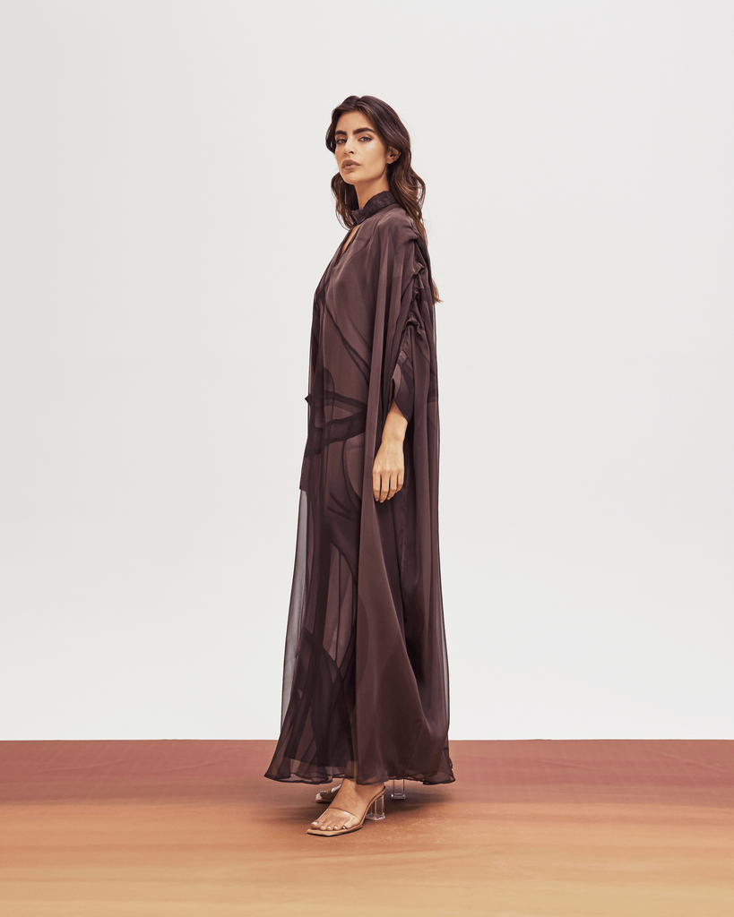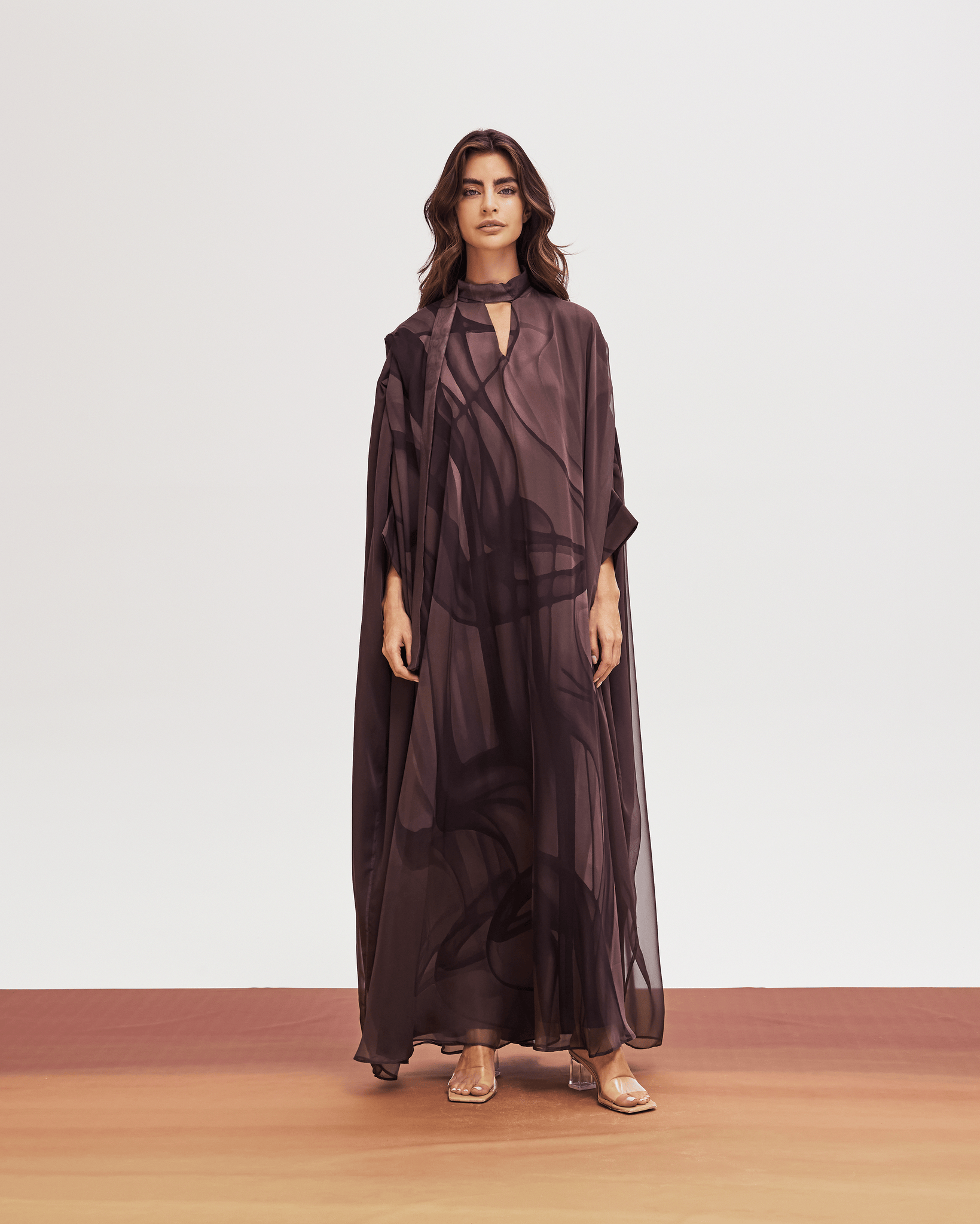 PURPLE PRINTED CHIFFON GATHERED SLEEVE LOOSE FIT DRESS