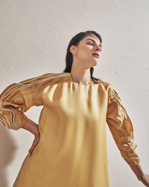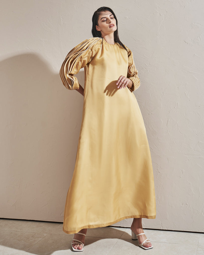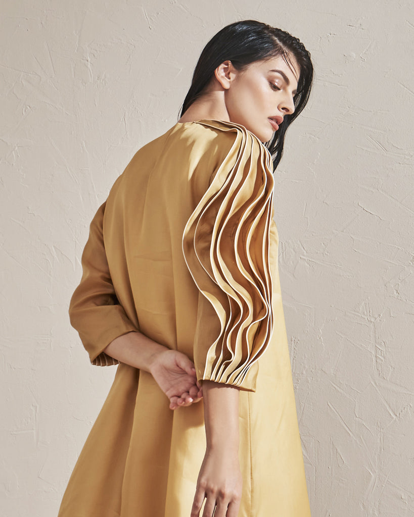 MATTE ORGANZA DRESS WITH SLEEVE DETAILS