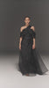 BLACK DRAPED METALLIC TULLE SEMI FIT DRESS
