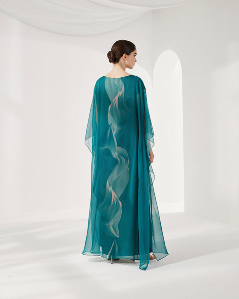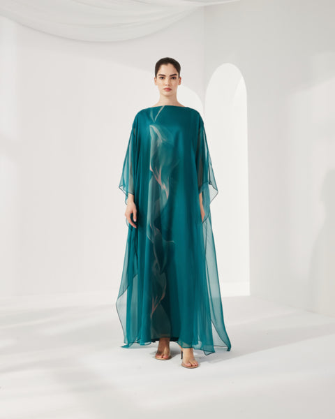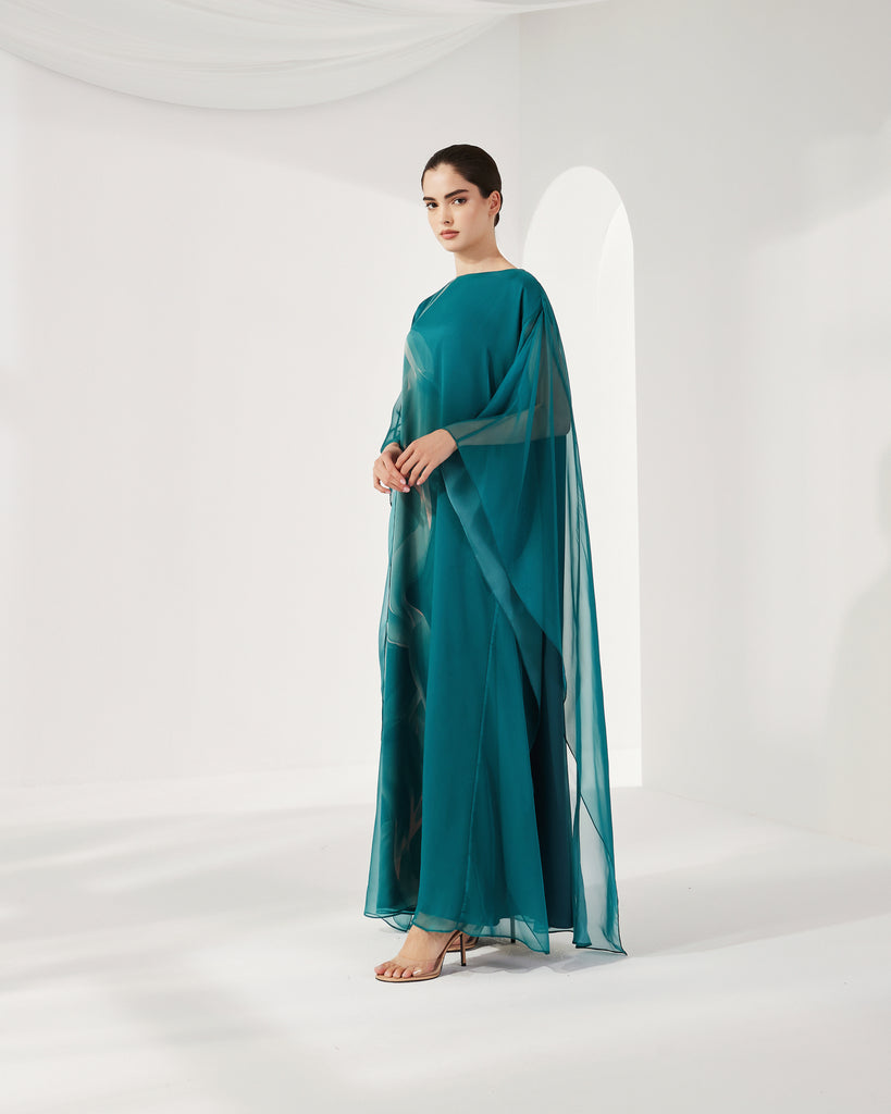 TEAL PRINTED CHIFFON OVERSIZED DRESS