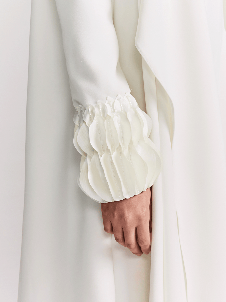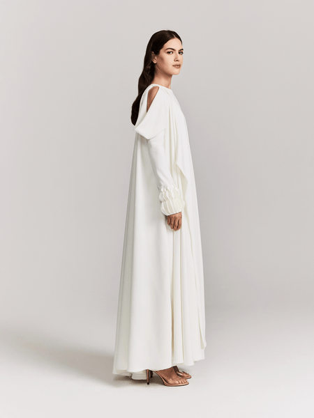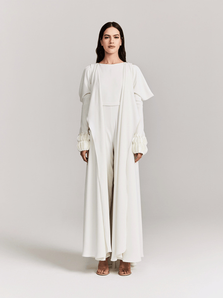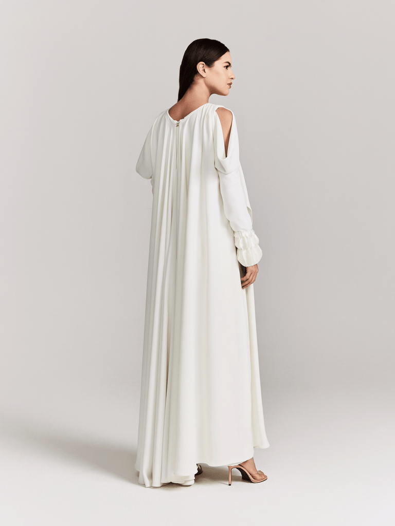 OFF WHITE CREPE JUMPSUIT WITH ATTACHED CAPE