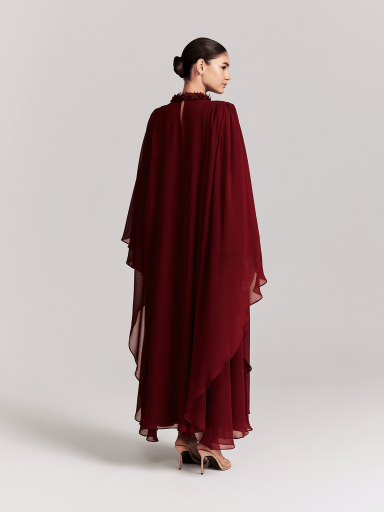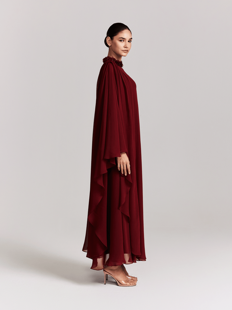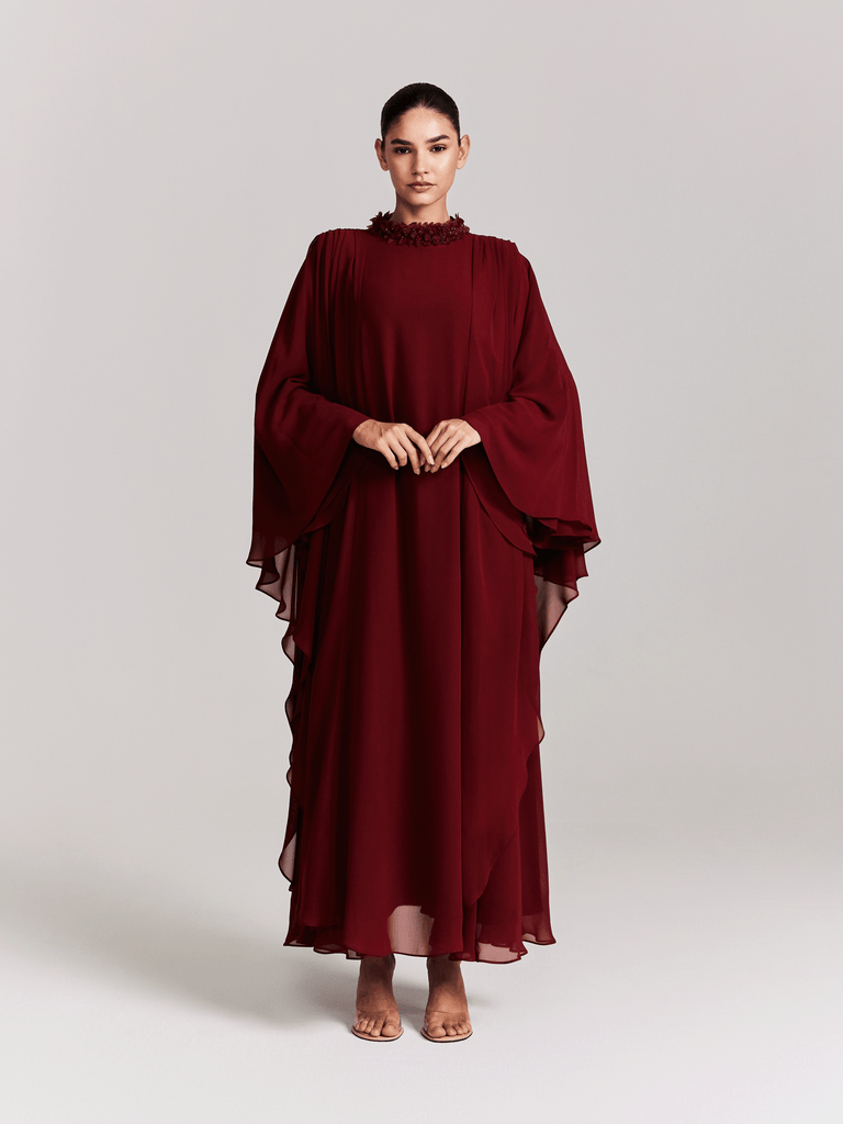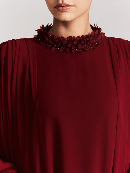 MAROON CHIFFON OVERSIZED DRESS WITH AN EMBROIDERED COLLAR