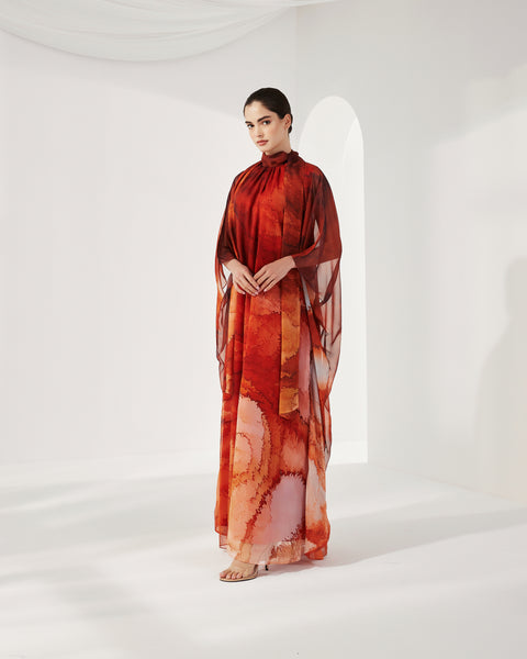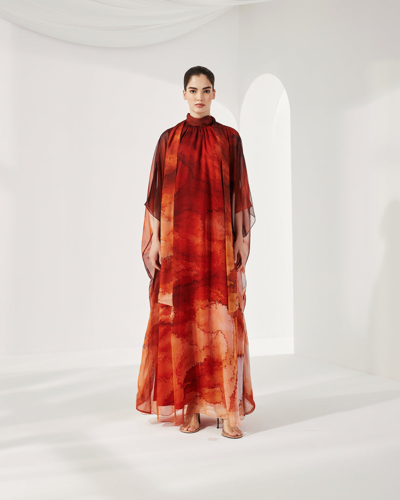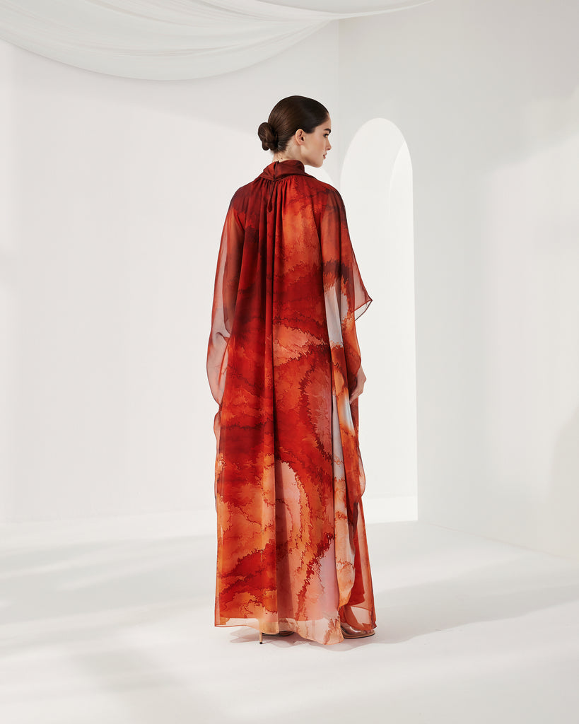 BRIGHT ORANGE PRINTED CHIFFON OVERSIZED DRESS