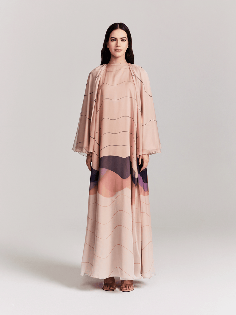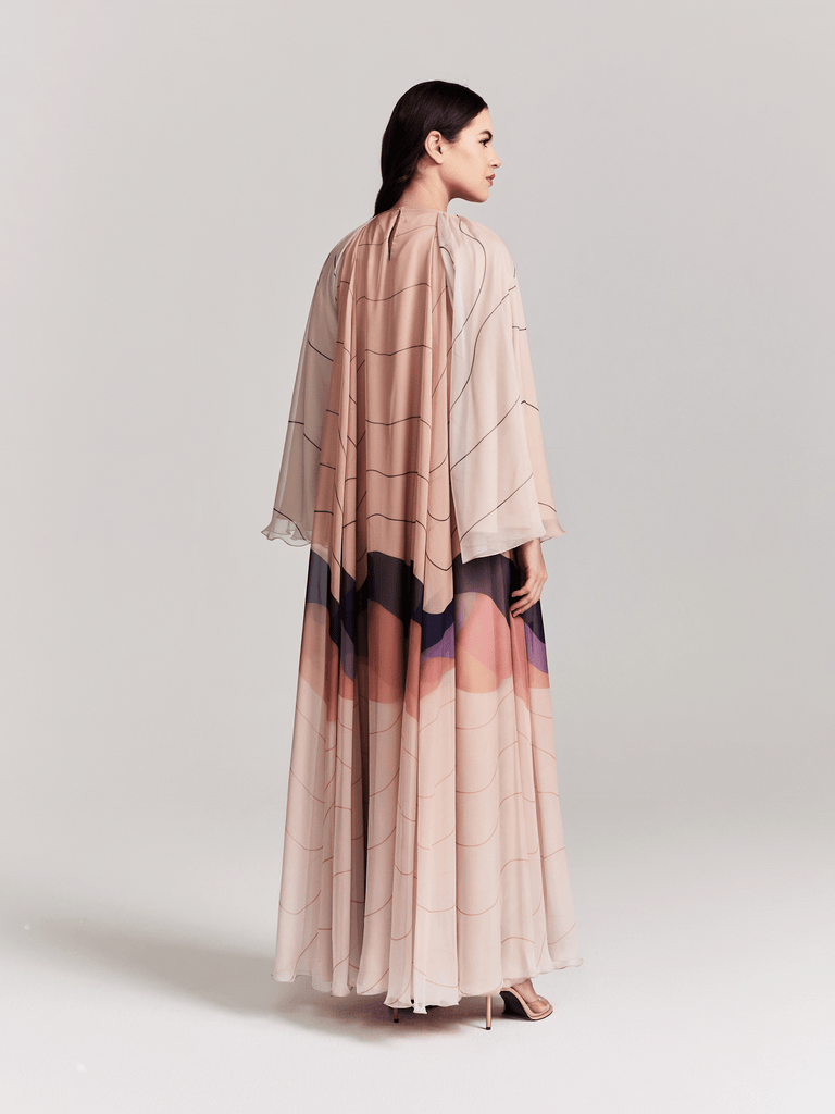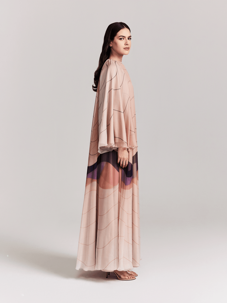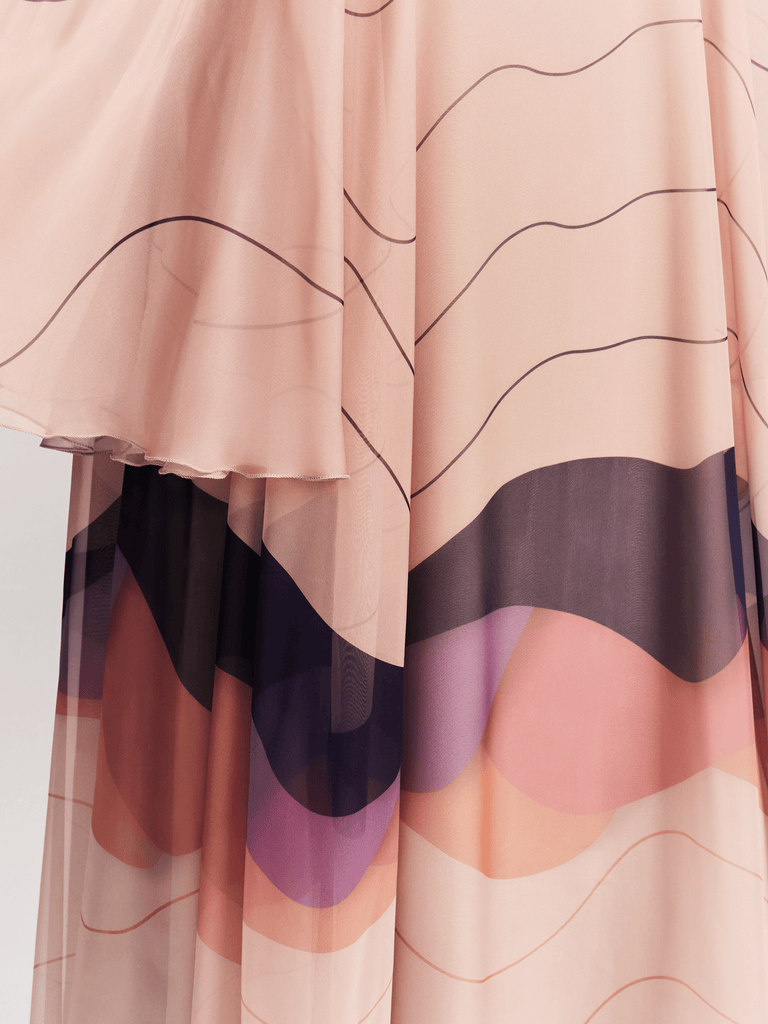 LIGHT PEACH PRINTED CHIFFON LOOSE FIT DRESS