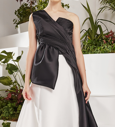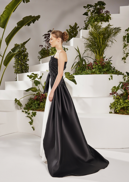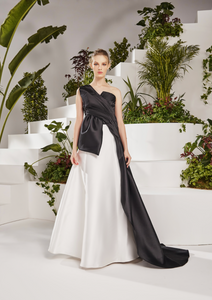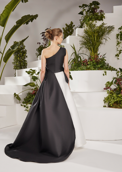 SATIN ASYMMETRIC DRESS WITH TRAIL