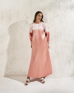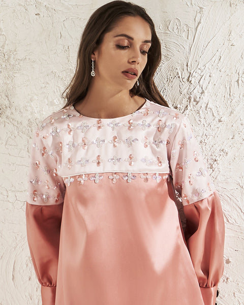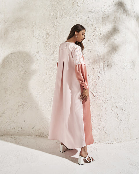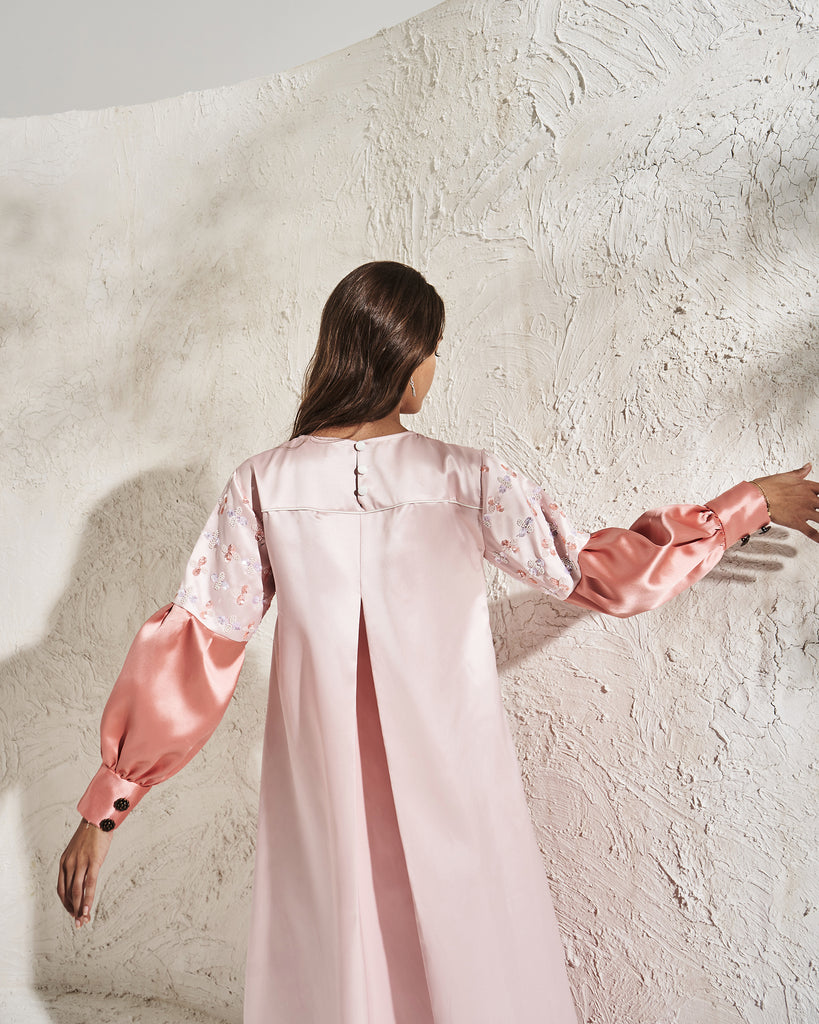 - DESCRIPTION - PANEL DRESS WITH EMBROIDERY AND CUFF DETAILING